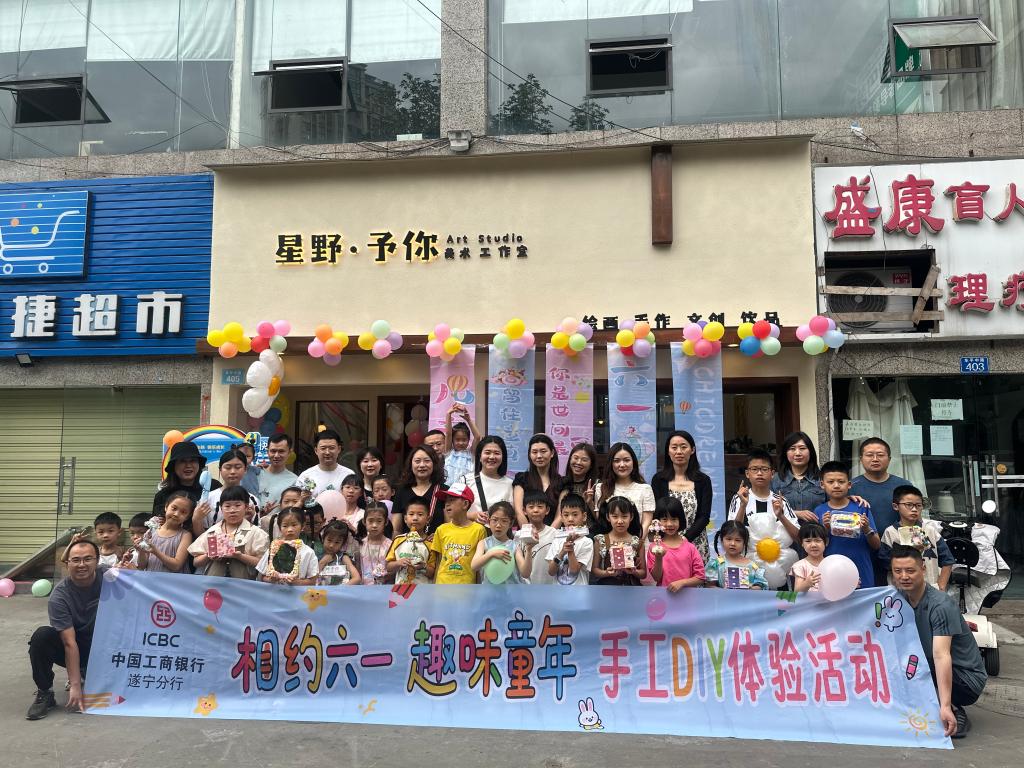 为庆祝“六一”国际儿童节,关爱儿童健康成长,5月25日上午,由中国工商银行遂宁分行主办、教师教育学院承办的“相约六一·趣味童年”手工DIY体验活动在星野予你美术工作室欢乐举行。活动通过趣味游戏、亲子互动、快乐抽奖等环节,为孩子们打造了一场充满童趣的节日盛宴。