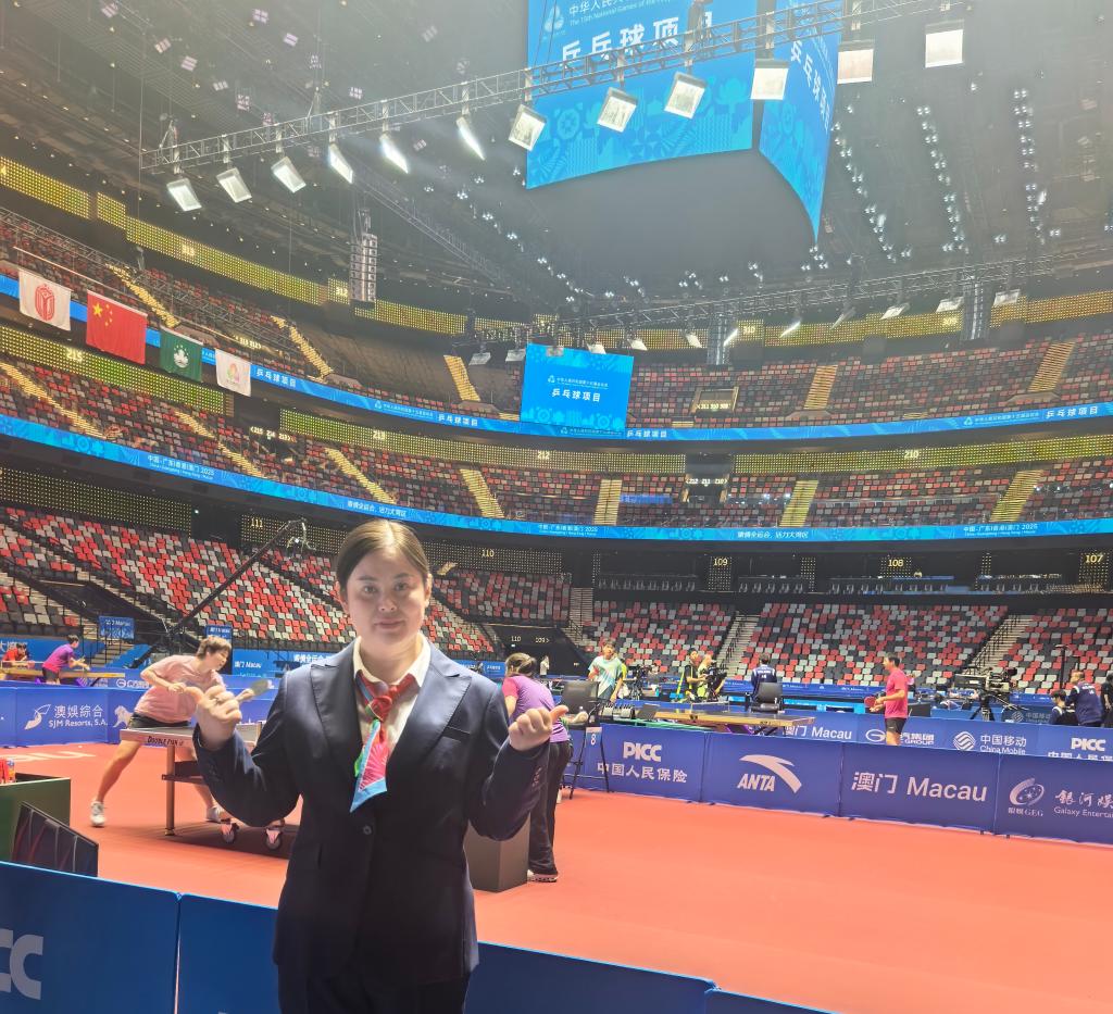 11月21日,中华人民共和国第十五届全国运动会在粤港澳大湾区圆满落幕。我校教师教育学院教师、乒乓球国际级裁判员贺小芹老师,受国家体育总局正式选派,远赴澳门担任本届运动会乒乓球项目决赛阶段技术官员,参与赛事执裁工作。这一安排既是国家体育总局对贺小芹老师专业能力的高度认可,更是我校教学质量提升与教师队伍建设成果的集中体现。
