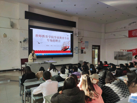 2021年12月2日下午15:00在尚学楼B109教室,为教师教育学院在校17学前w班群体同学成功举办了专场招聘会。本次招聘会由教师教育学院党总支副书记董雪梅和辅导员李冬梅共同组织。招聘会分园方现场宣讲、现场面试考核和签署协议等3个环节组成。