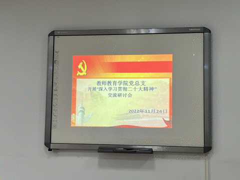 2022年11月24日下午,教师教育学院党总支组织全院教职工在明志楼215会议室开展“深入学习贯彻二十大精神”交流研讨会,会议由学院党总支书记江涛主持。