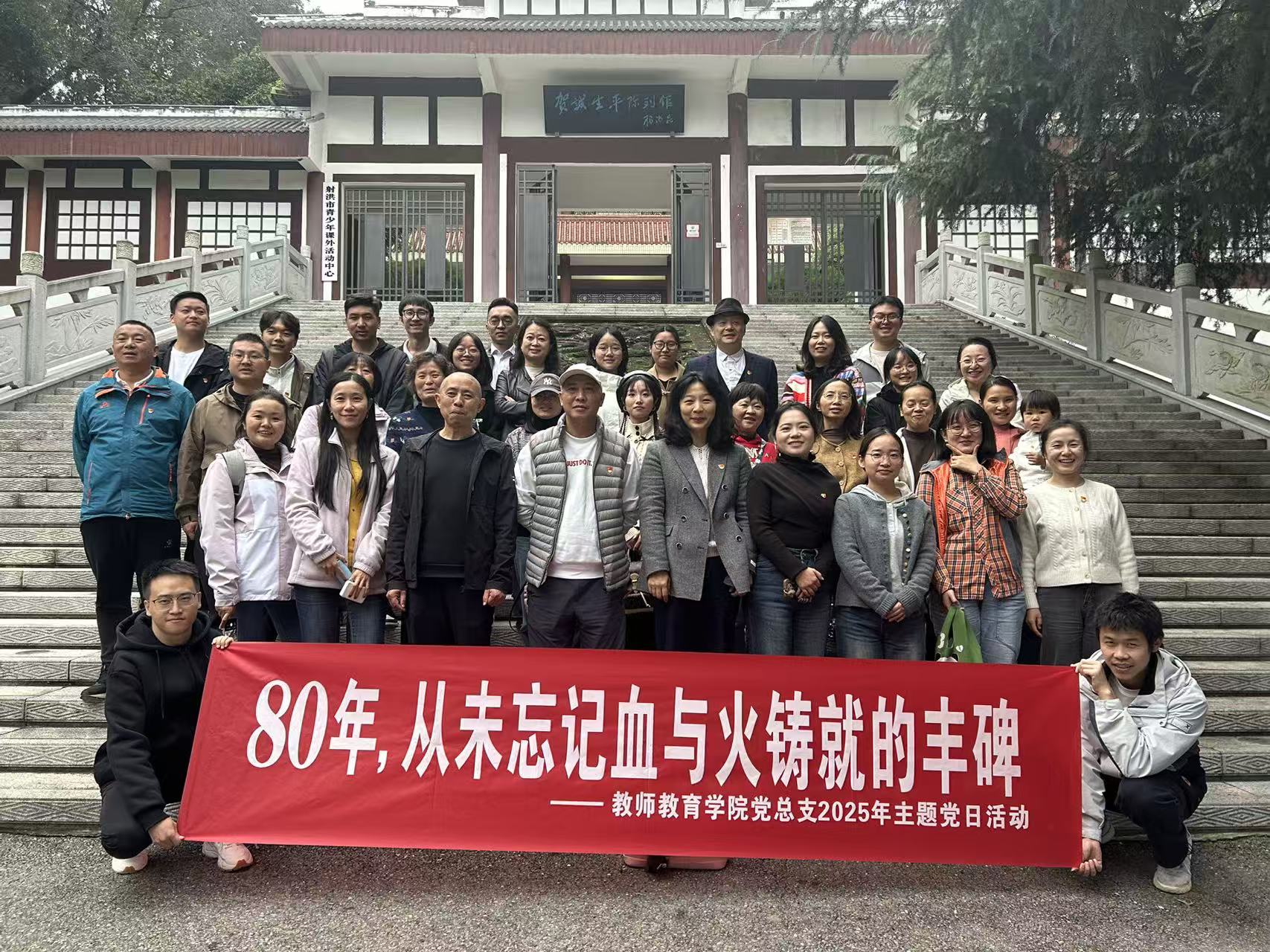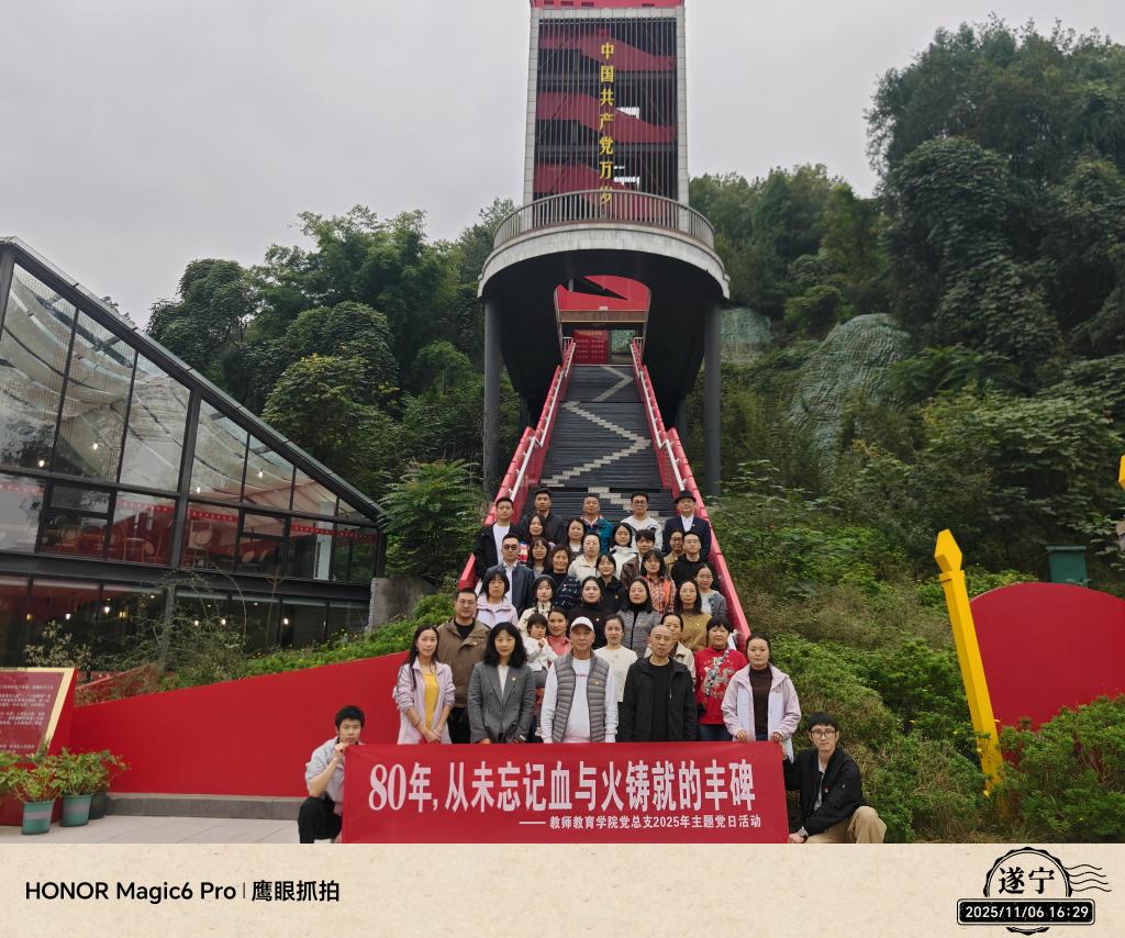 历史昭昭,精神永恒。为纪念中国人民抗日战争暨世界反法西斯战争胜利80周年,传承红色基因,厚植爱国情怀,2025年11月6日,四川职业技术学院教师教育学院党总支组织全体党员赴射洪市,走进3536军工厂遗址与贺诚生平纪念馆,开展“80年,从未忘记血与火铸就的丰碑”主题党日活动,在实地研学中感悟初心使命,在精神洗礼中凝聚奋进力量。