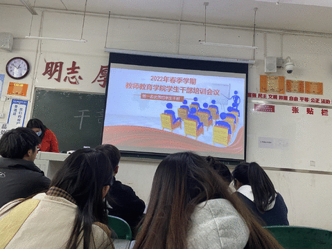 为进一步加强我院学生干部队伍建设,促使学生干部明确自身职责,认真为同学们服务,外塑形象,内强素质,提高干事综合素质和工作能力,2022年3月3日12:50,教师教育学院团总支书记李冬梅在尚学楼B108为我院学生干部作了一次题为《做一名优秀的学生干部》的培训。