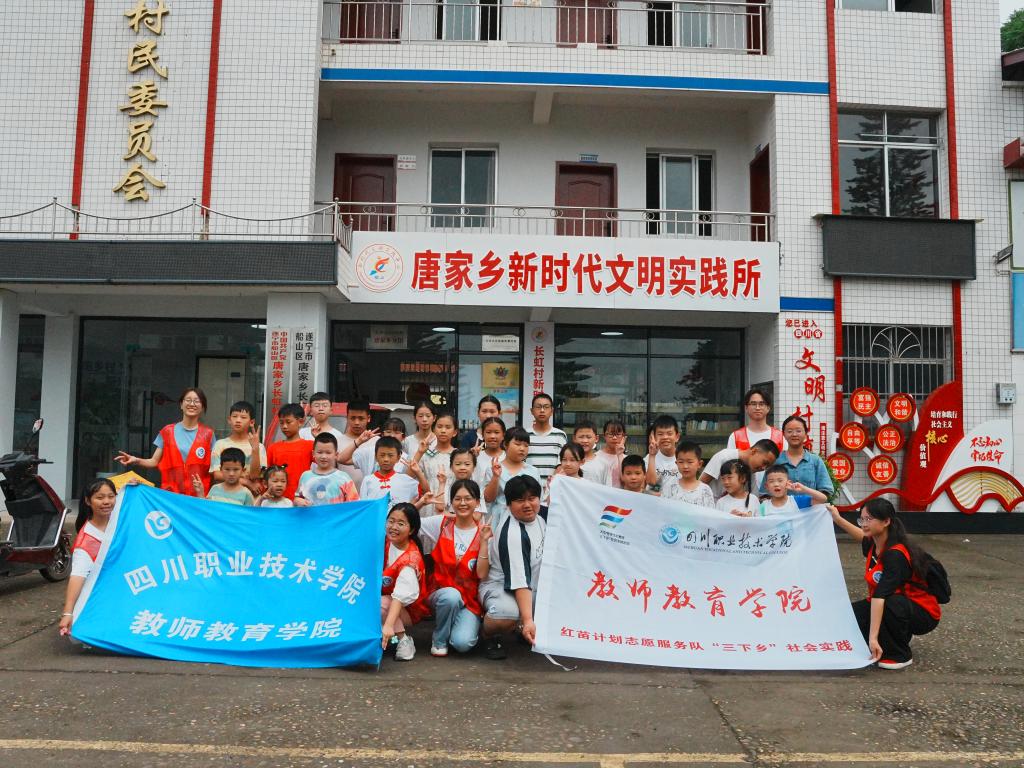 为引导和帮助青年学生在社会课堂中受教育、长才干、作贡献,争做有理想、敢担当、能吃苦、肯奋斗的新时代好青年。四川职业技术学院教师教育学院红苗计划志愿服务队于8月10日上午赴遂宁市唐家乡长虹村开展以关爱留守儿童为主题的“关爱润童心,七彩绘童年”的暑期“三下乡”社会实践活动。