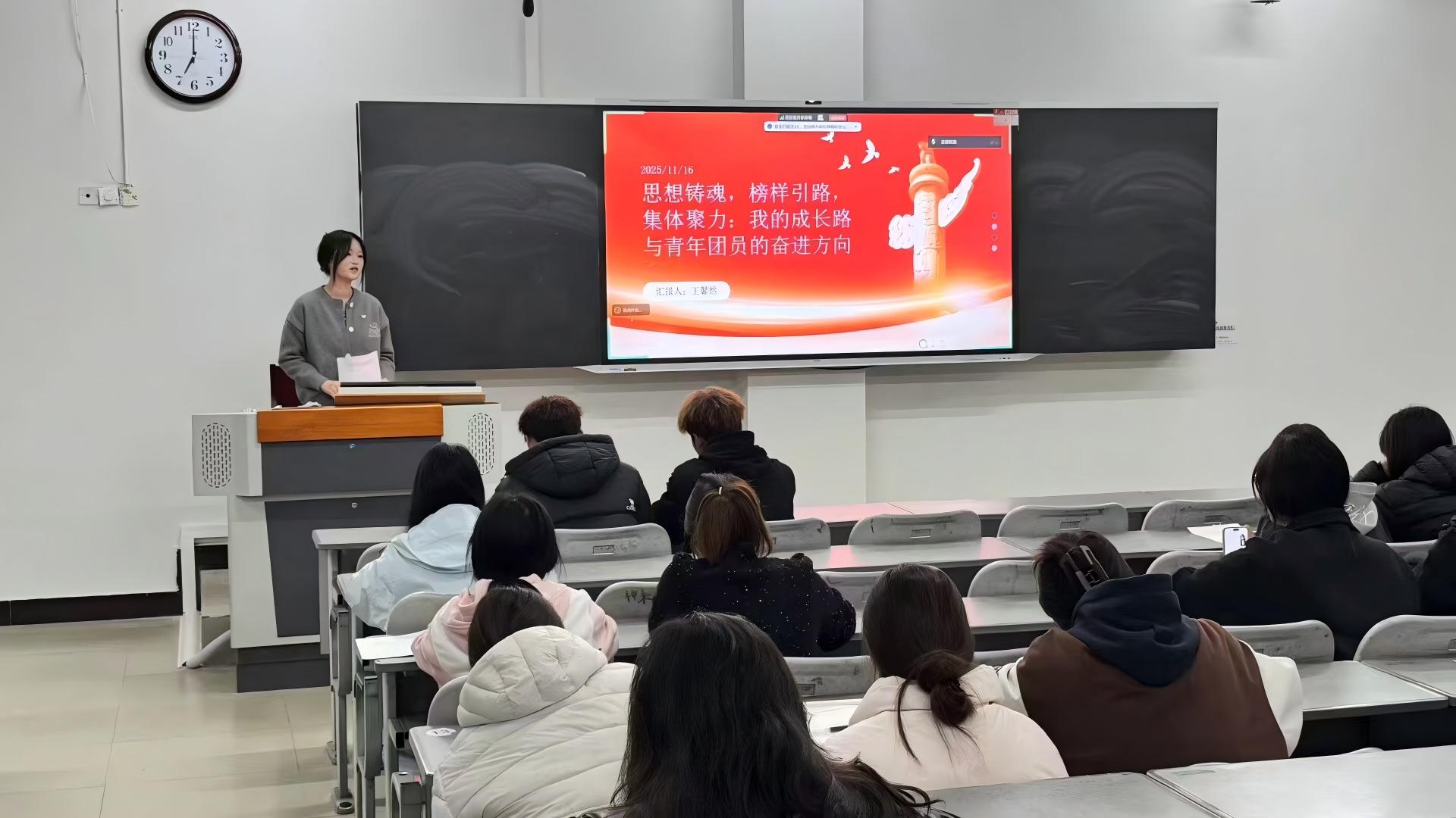 最后,王馨然提出三点建议:铸魂于思,让信仰扎根;砺能于行,让本领过硬;聚力于心,让青春发光。本次分享会不仅回顾个人成长,更是一堂生动团课,清晰指明新时代青年应将个人理想融入国家大局,在思想淬炼、实干笃行与集体聚力中绽放青春。