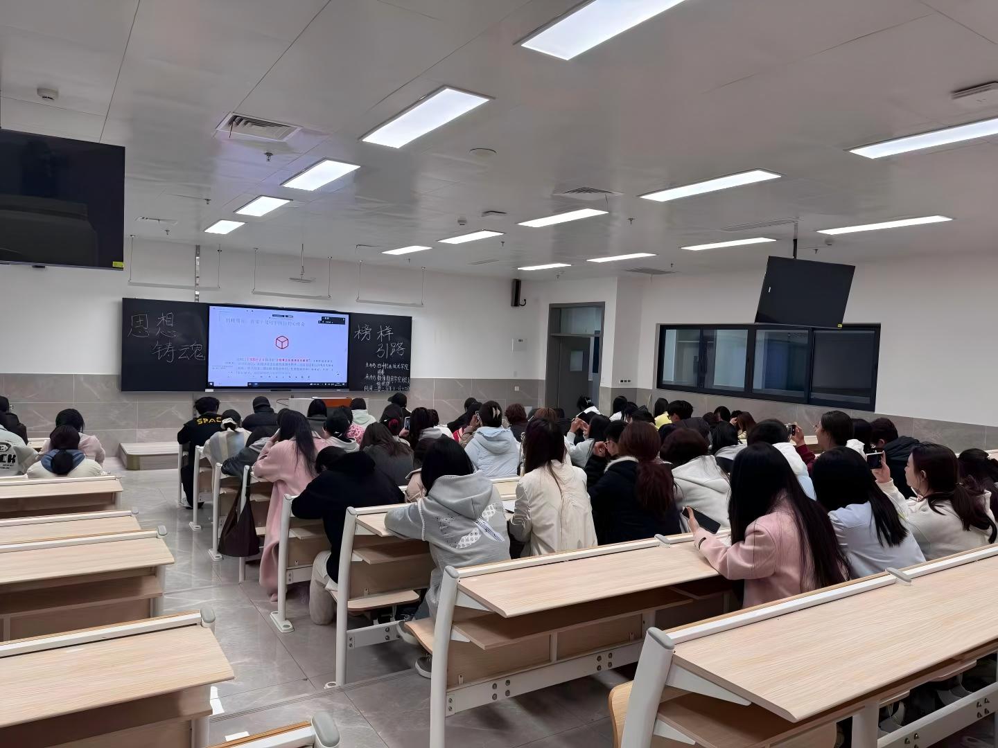 为深入学习贯彻党的二十届三中、四中全会精神,明确青年使命担当,11月13日晚,“思想铸魂,榜样引路,集体聚力:我的成长路与青年团员的奋进方向”榜样故事分享会于河东校区B107、射洪校区锂想楼A403同步举行。主讲人为小学教育专业2025年国家奖学金获得者、预备党员王馨然,24、25级120余名学生代表参与。