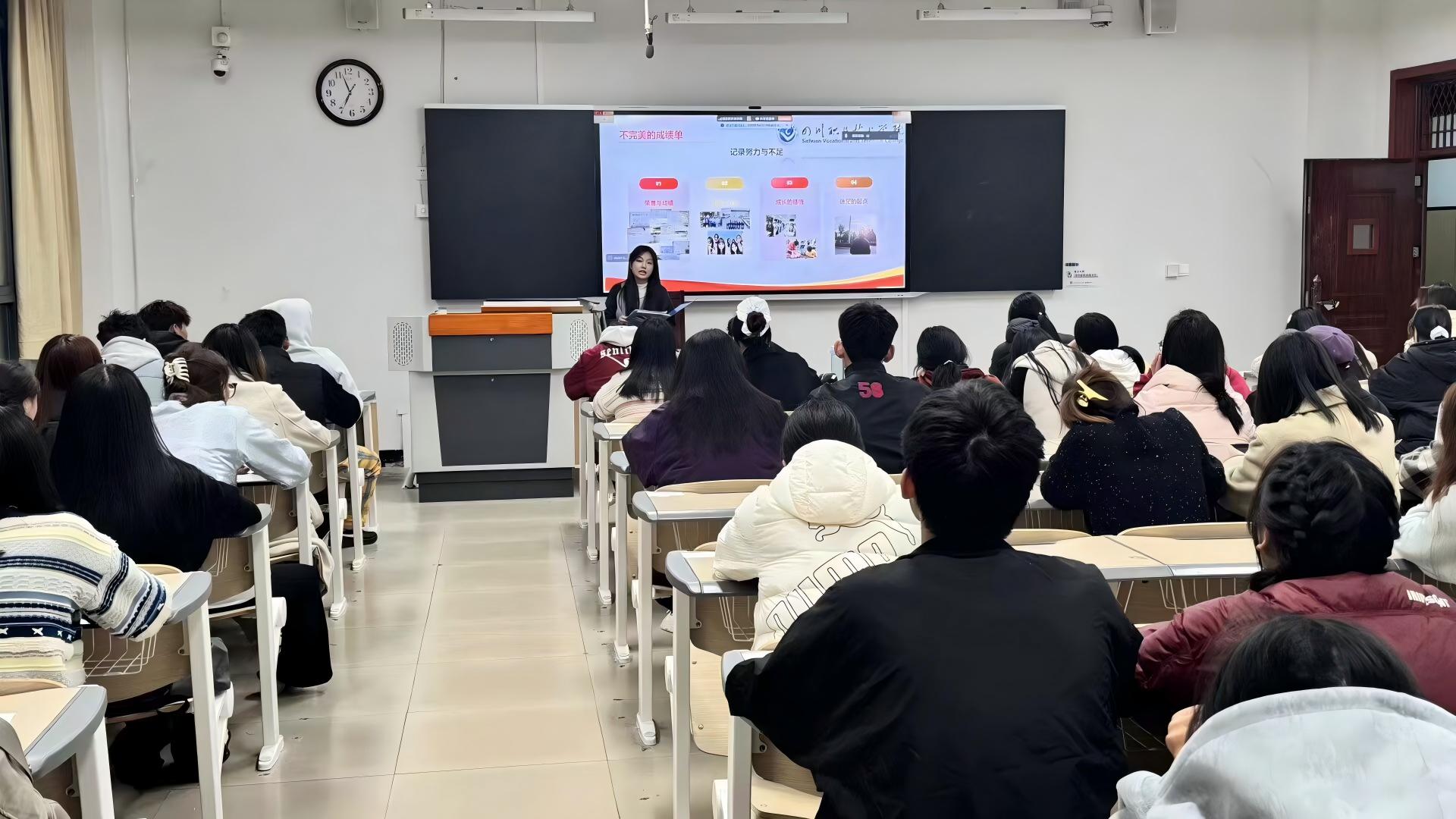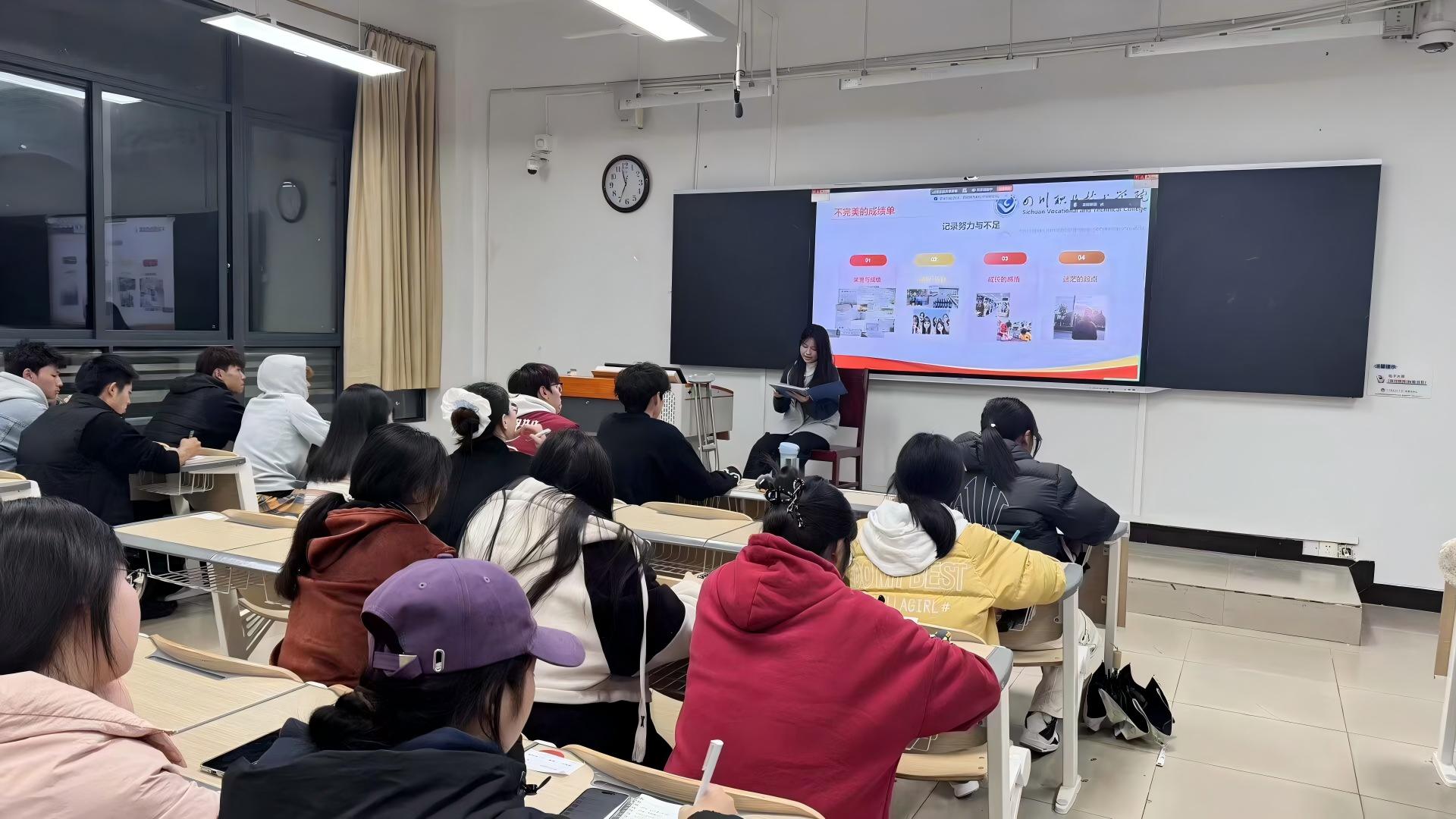 为进一步深化榜样工作,充分发挥榜样力量的示范引领效应,切实提升学生的职业发展能力。11月12日晚,由团总支主办、2025年国家奖学金获得者、预备党员徐琴美主讲的以“追光而遇,向暖而行”为主题的榜样故事分享活动在射洪校区锂想楼A403、河东校区B107同步进行,双校区120余名入团积极分子参与本次活动。