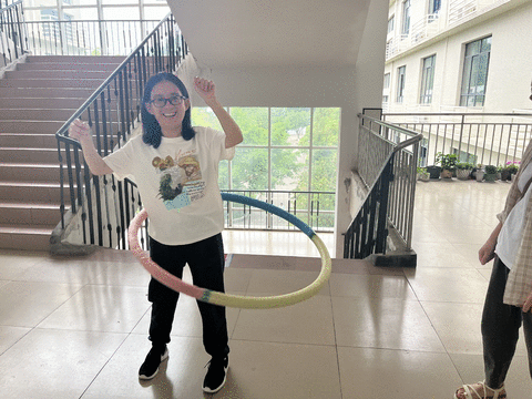 此次活动在气氛热烈的转呼啦圈比赛中拉开序幕,大家积极踊跃参与,努力用自己小蛮腰转动呼啦圈使其不落地,拉拉队在旁替选手或呐喊助威,或认真计数,现场一片欢声笑语。通过参加转呼啦圈活动,让长期伏案的老师们不仅锻炼了身体,还增强了身体的协调性和反应力。