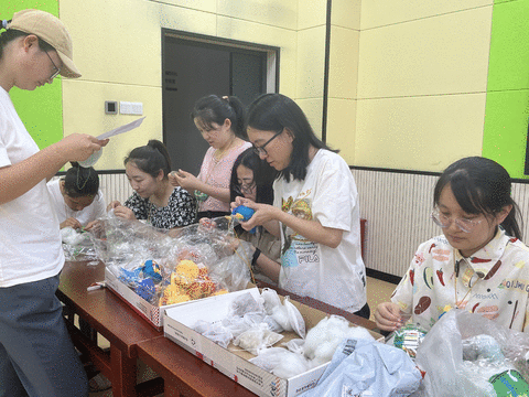 接着是最令人期待的手工制作香囊环节。一到活动场地,大家看着桌上制作香囊所需琳琅满目的物料(如布料、填充香料、包扎线、串珠、吊坠等)兴奋不已,纷纷参与,想大秀自己的女红手艺。都说巾帼不让须眉,可到了这绣艺现场,你才发现,原来我们学院人才辈出,在这一环节,须眉同样不让巾帼呢!不信的话,睁大眼睛,有图片为证哟。