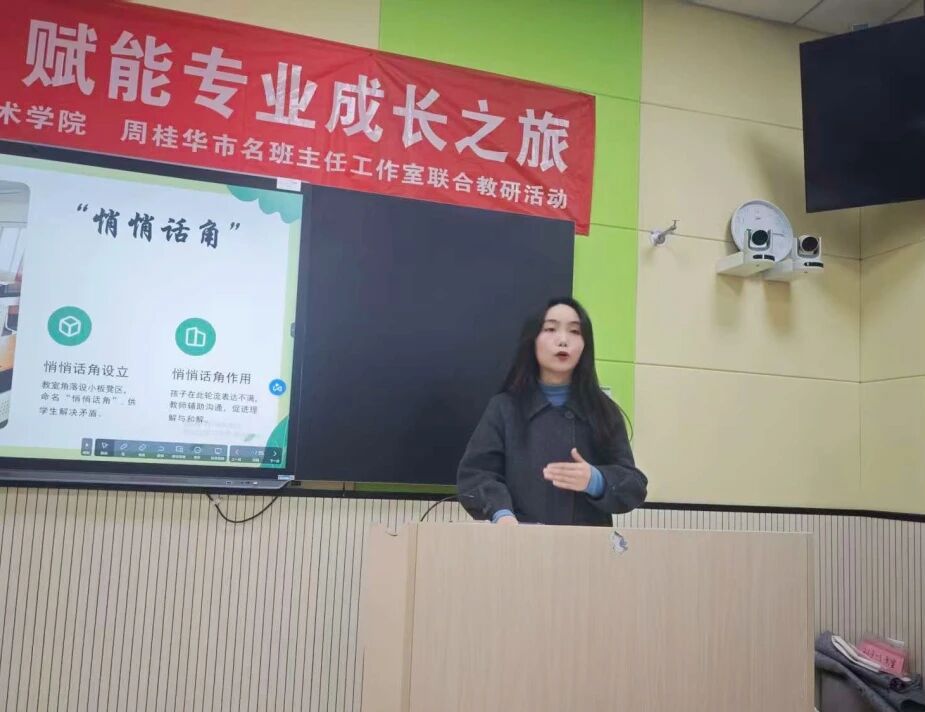 在交流环节,名师团队的优秀教师唐超带来《执掌情绪的方向盘》班会说课。她围绕学生情绪管理重点,细致分享科学引导方法,思路清晰、技巧实用,把班级情绪育人的窍门娓娓道来,尽显扎实教学功底与育人初心。随后,优秀班主任刘琳带来《浅谈低段班主任管理小智慧》专题讲座。有着13年班主任经验的她,循着“心思路、慧带班”理念,结合日常教学实例,分享低段班级常规管理、习惯培养的实用方法,暖心干货让在场老师收获颇丰。王蓉老师以《学做一个会“偷懒”的班主任》为题分享,打破传统管理思维,传递“巧管高效”的班级管理思路,细致拆解自主管理、合理分工的实操要点,教大家用智慧减负提效,新颖实用的方法给老师们带来不少启发。